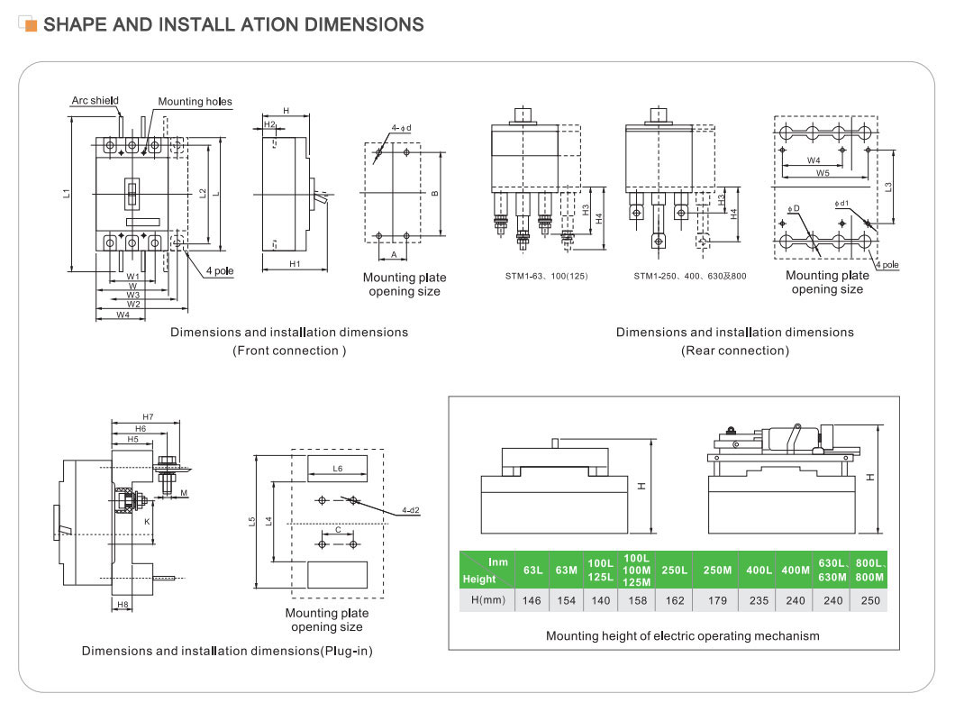 Употреби: Електрическите прекъсвачи с формован корпус се използват широко в електрически системи в жилищни, търговски, индустриални и транспортни области. В жилищното поле се използва за защита на безопасността на домашни вериги и електрическо оборудване; в търговската сфера се използва за защита на електрическите системи на големи сгради и търговски помещения; в индустриалната област се използва за контрол и защита на безопасната работа на фабрично оборудване и машини; в областта на транспорта се използва за защита на стабилната работа на светофари, железопътни сигнали и друго оборудване.